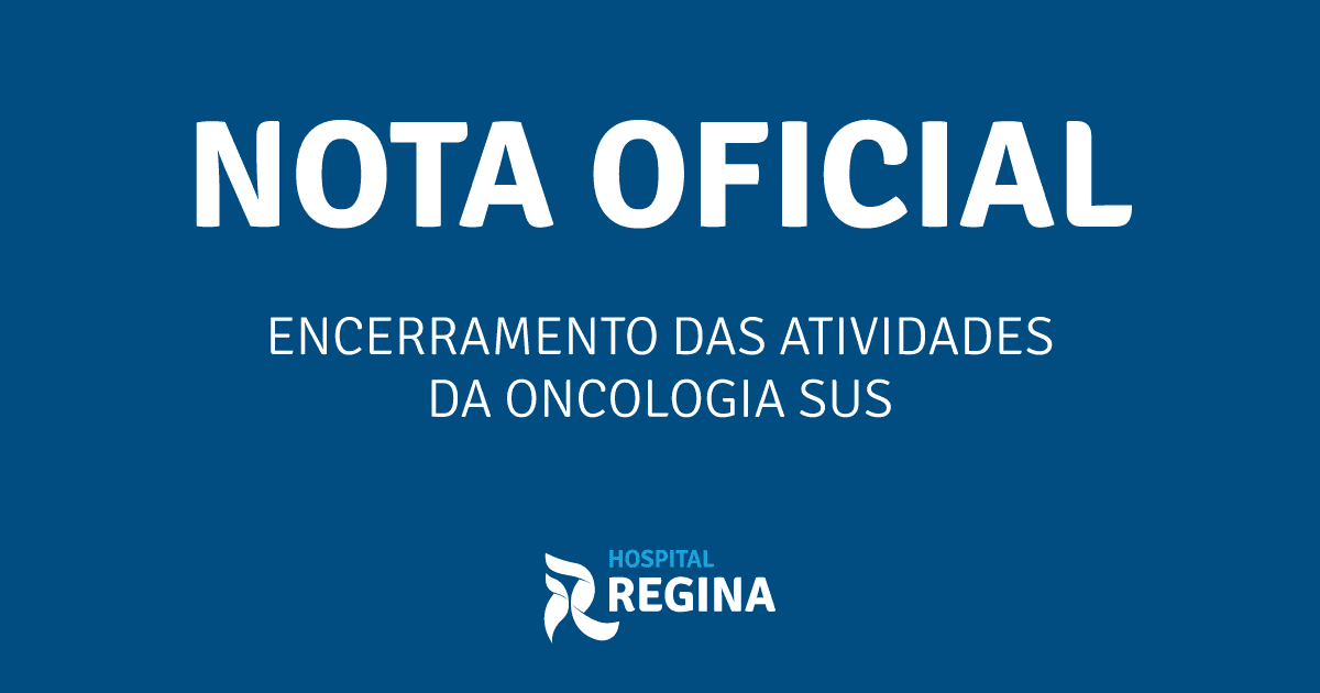 Nota do Hospital Regina quanto ao encerramento da prestação do serviço de oncologia do SUS